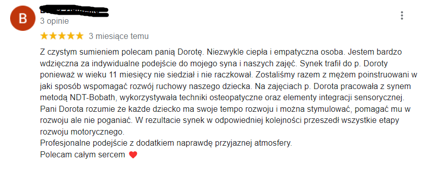 W mojej pracy z niemowlakami i ich rodzicami stawiam na pełne wsparcie i kompleksową opiekę. Moje konsultacje to nie tylko fizjoterapia i zalecenia sensoryczne. Dążę również do przekazania informacji, które wspierają procesy samoregulacji (samouspokojania się) u dziecka. Każdy z nas ma te umiejętności, i wspólnie ćwiczymy je w bezpieczny sposób.
